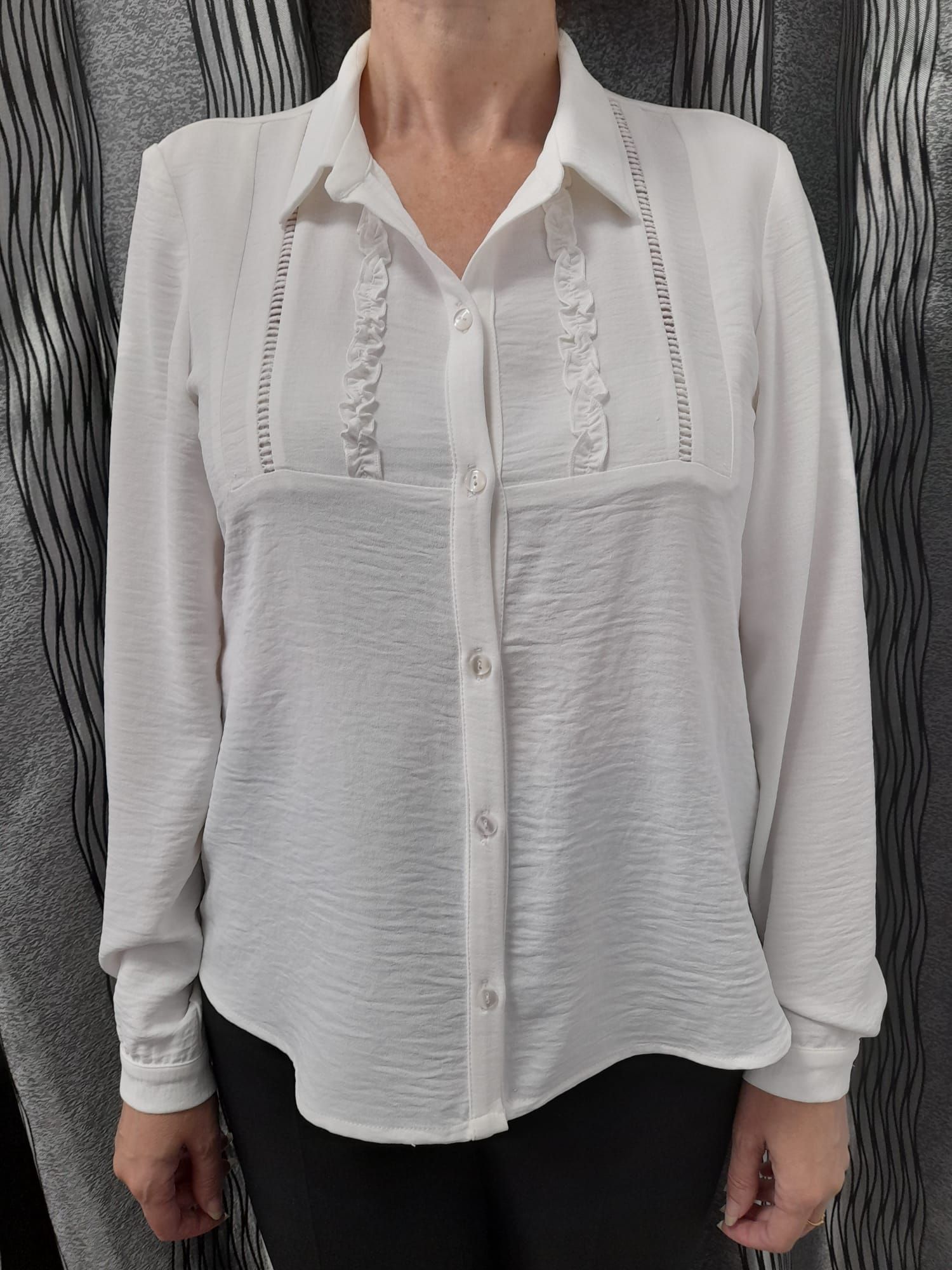 Camisa lisa con mini volante y entredós